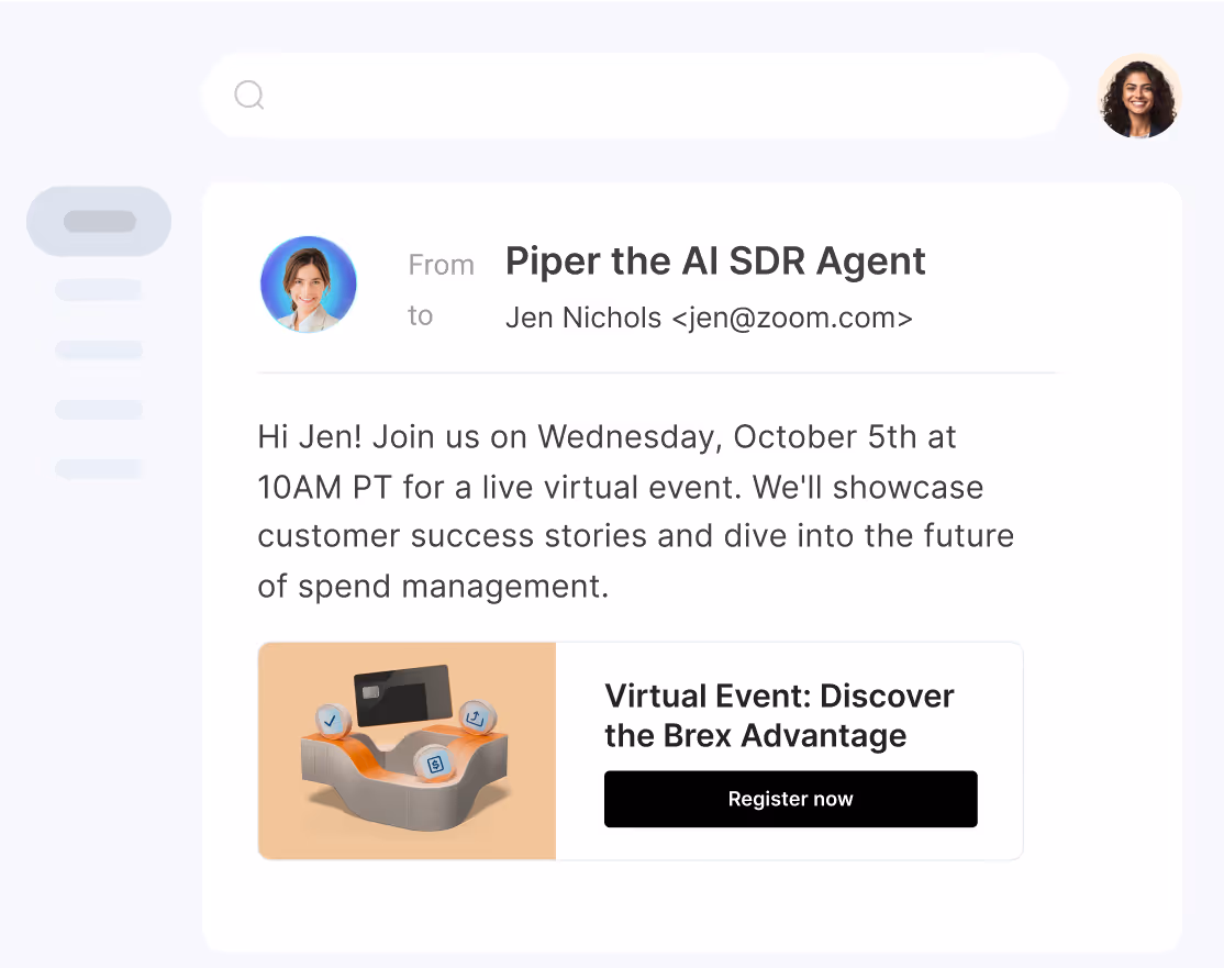 Whether it’s over email or live chat, Piper can assess key criteria like ABM tier, buying stage, or topics of interest then present the most relevant content to keep the target account engaged with your business.